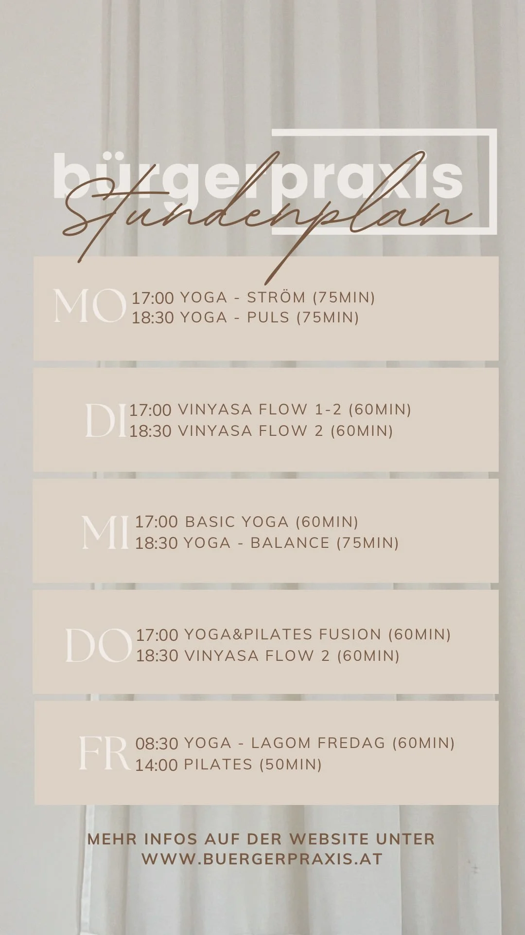 Folge unserem Instagram Account @buergerpraxis um laufend über neue Events und Workshops informiert zu sein & einen Einblick in unseren Praxisalltag zu bekommen :)