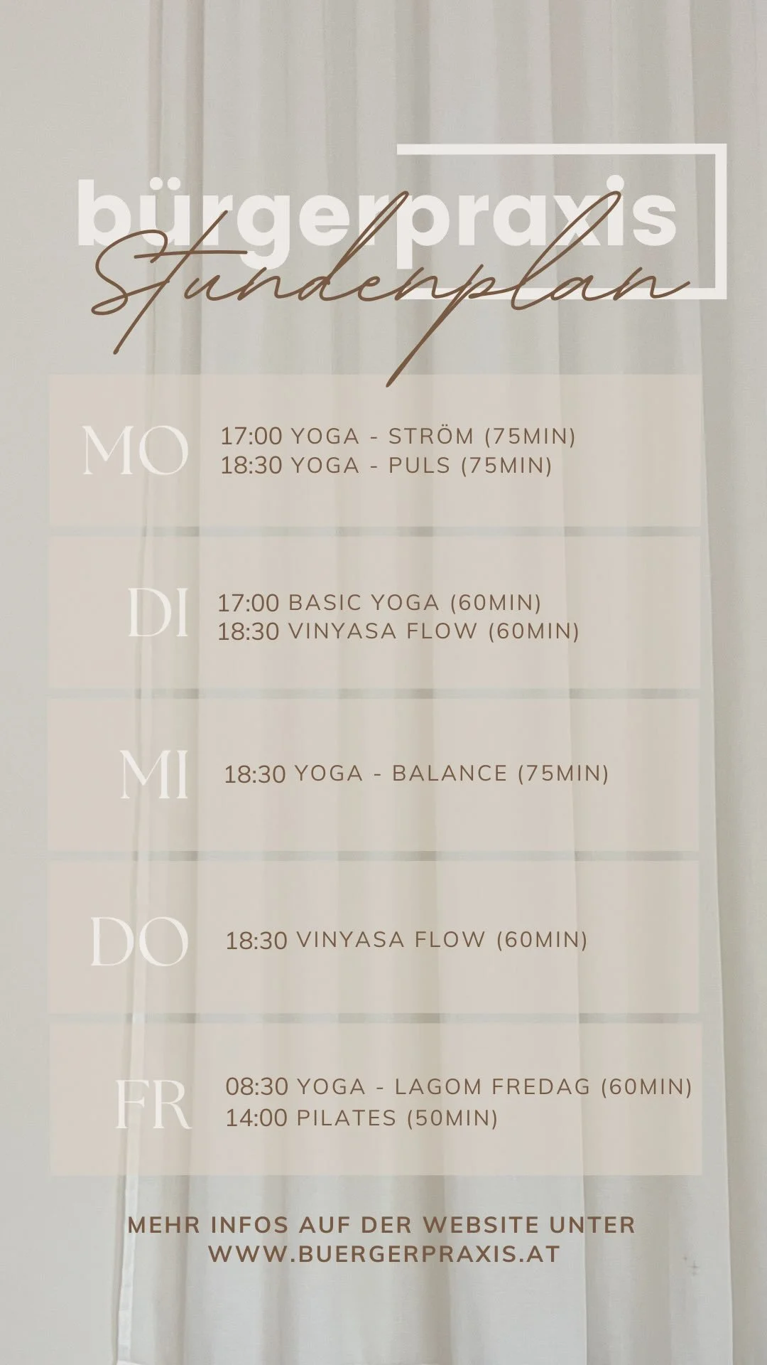 Folge unserem Instagram Account @buergerpraxis um laufend über neue Events und Workshops informiert zu sein & einen Einblick in unseren Praxisalltag zu bekommen :)